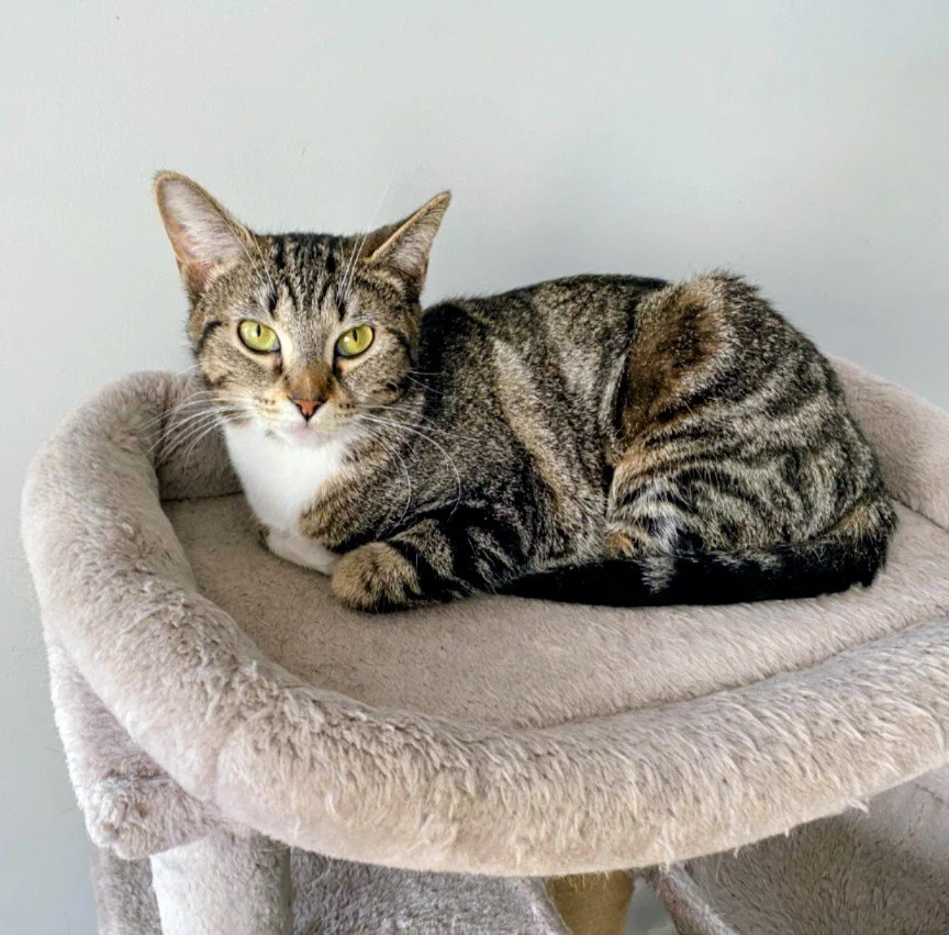 Aveline is a sweet, lovable and beautiful girl who enjoys the company of everyone she meets. She's laid back but still has the curiosity and energy of a kitten, and when she's not coming for a cuddle, she'll happily play on her own with her plastic springs or other toys. She also gets along great with other friendly and calm kitties. Aveline would make a wonderful companion to any loving home!ite Blurb here