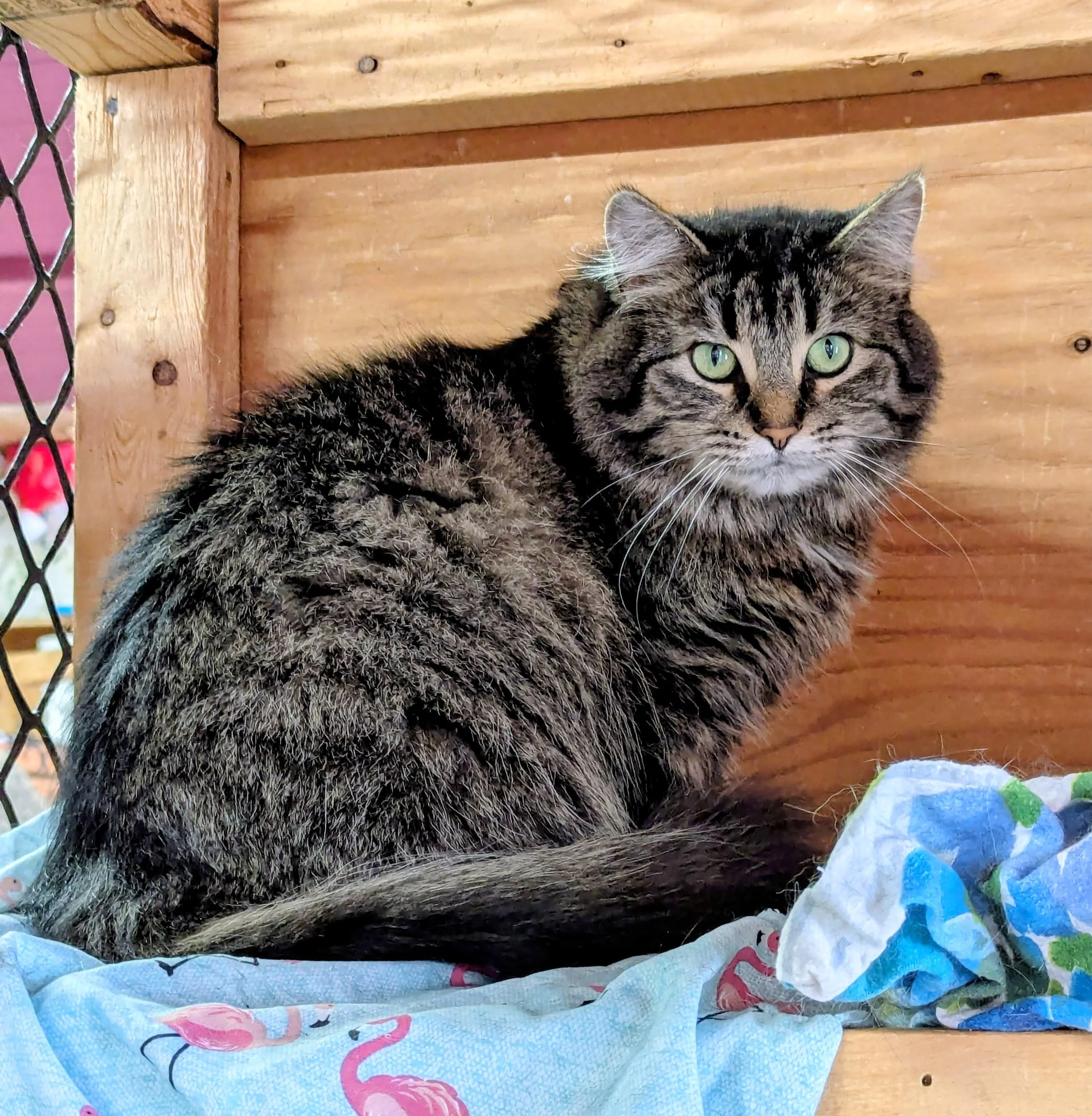Chloelyn came into our care alongside her one tiny kitten, and from the very beginning it was clear how devoted she was as a mother. She was understandably protective and unsure of her new surroundings, and the shelter environment felt overwhelming for her at first. With time, patience, and care, Chloelyn has truly come out of her shell. She is now thriving in a kennel alongside other shelter kitties, growing more comfortable and curious each day. While she’s still a little timid, her gentle nature shines through more and more. Chloelyn is ready to find her forever home. She would do best in a quiet environment where she can continue to build her confidence at her own pace. A home with another friendly feline would be ideal, as she enjoys the companionship and can learn by following their lead. With a little love and patience, Chloelyn will make a wonderful, loyal companion.