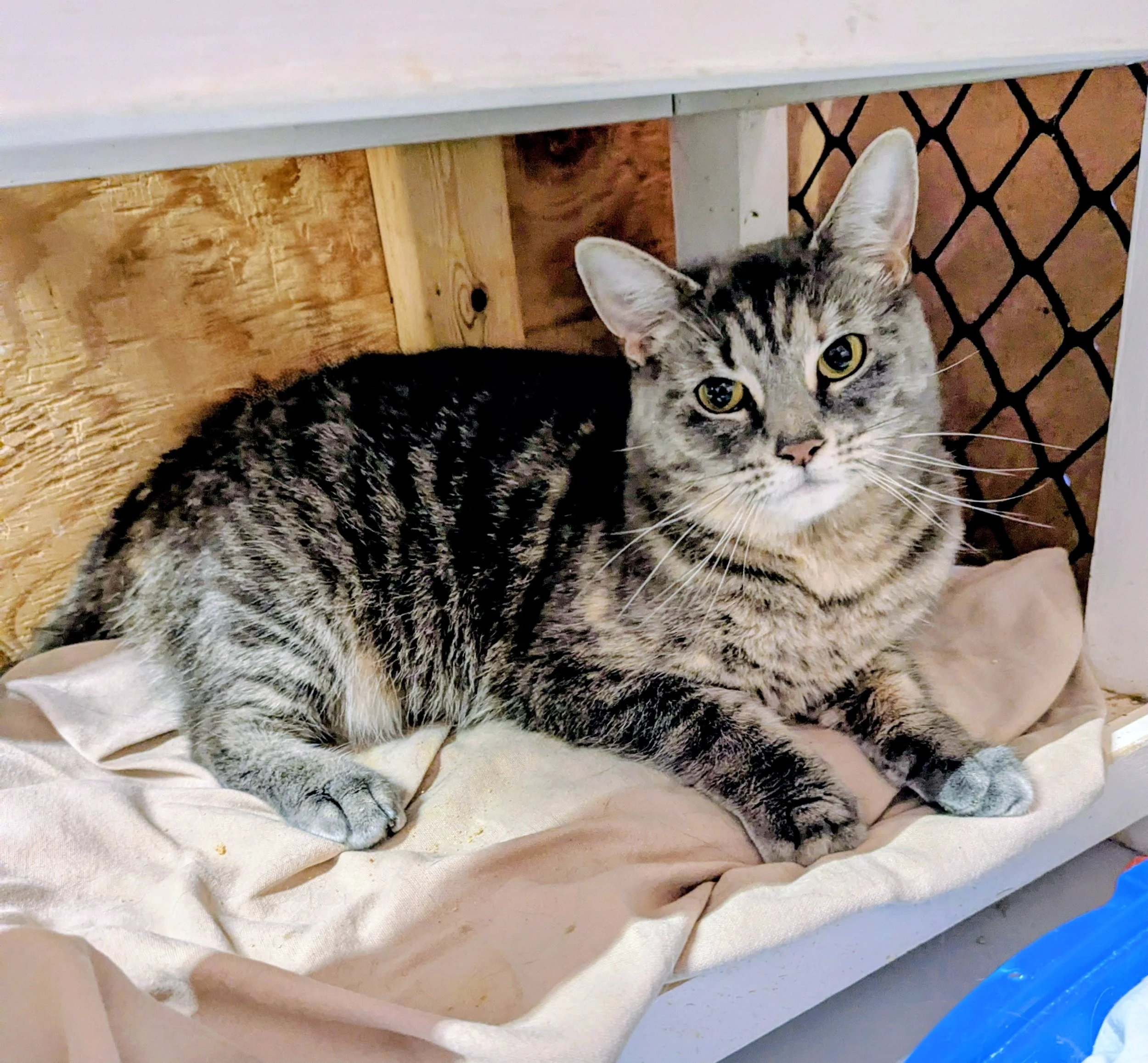 Florita is a beautiful grey tabby girl with a calm and observant nature. She recently came into our care alongside a few other cats from a small colony and is now ready to begin her next chapter in a loving forever home. Florita enjoys gentle pets and quiet companionship. She’s the kind of kitty who’s content to sit back and watch the world go by—often observing the other cats in her kennel as they play. Her relaxed personality makes her a wonderful match for a peaceful home where she can feel safe and settled. With a little time and affection, Florita is sure to become a loyal and comforting presence, bringing a quiet kind of joy to the people lucky enough to welcome her home.