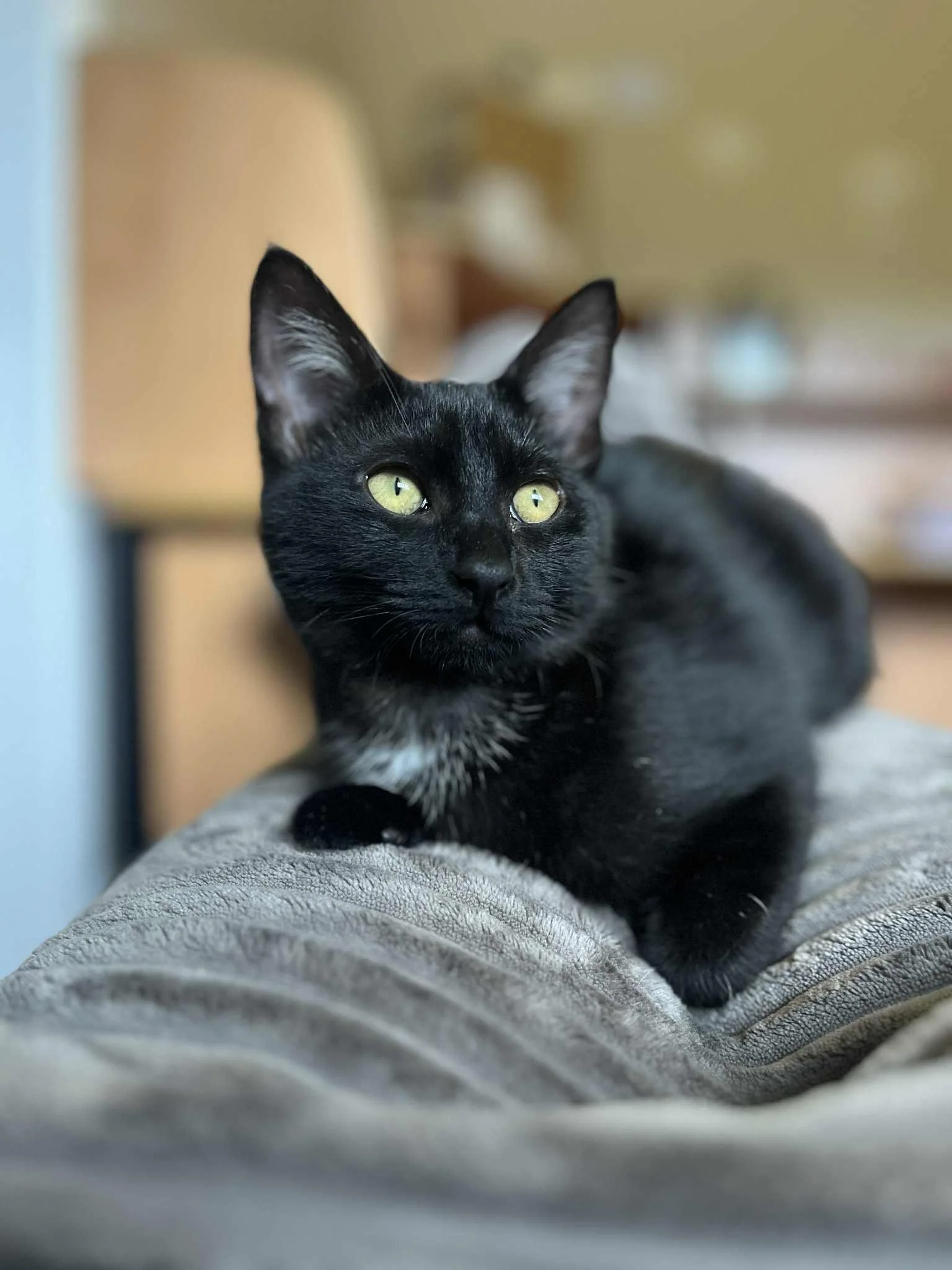Sonnet is an absolutely perfect little black beauty who is still available for adoption. She is the queen of quiet companionship, always close enough to keep you company but far enough to respect your boundaries. With her sleek black coat, golden eyes, and soft little meow that’ll melt you faster than her salmon treats disappear, she’s the ideal roommate who doesn’t steal your stuff — just your heart. If you’re looking for a cat who’s as independent as she is endearing, Sonnet might just be your perfect match. Sonnet would do best in a home with another kitty friend and a family with older children or an adult-only home would be ideal. If a sweet and silly cat is what’s missing in your home, Sonnet is just what you’ve been looking for!