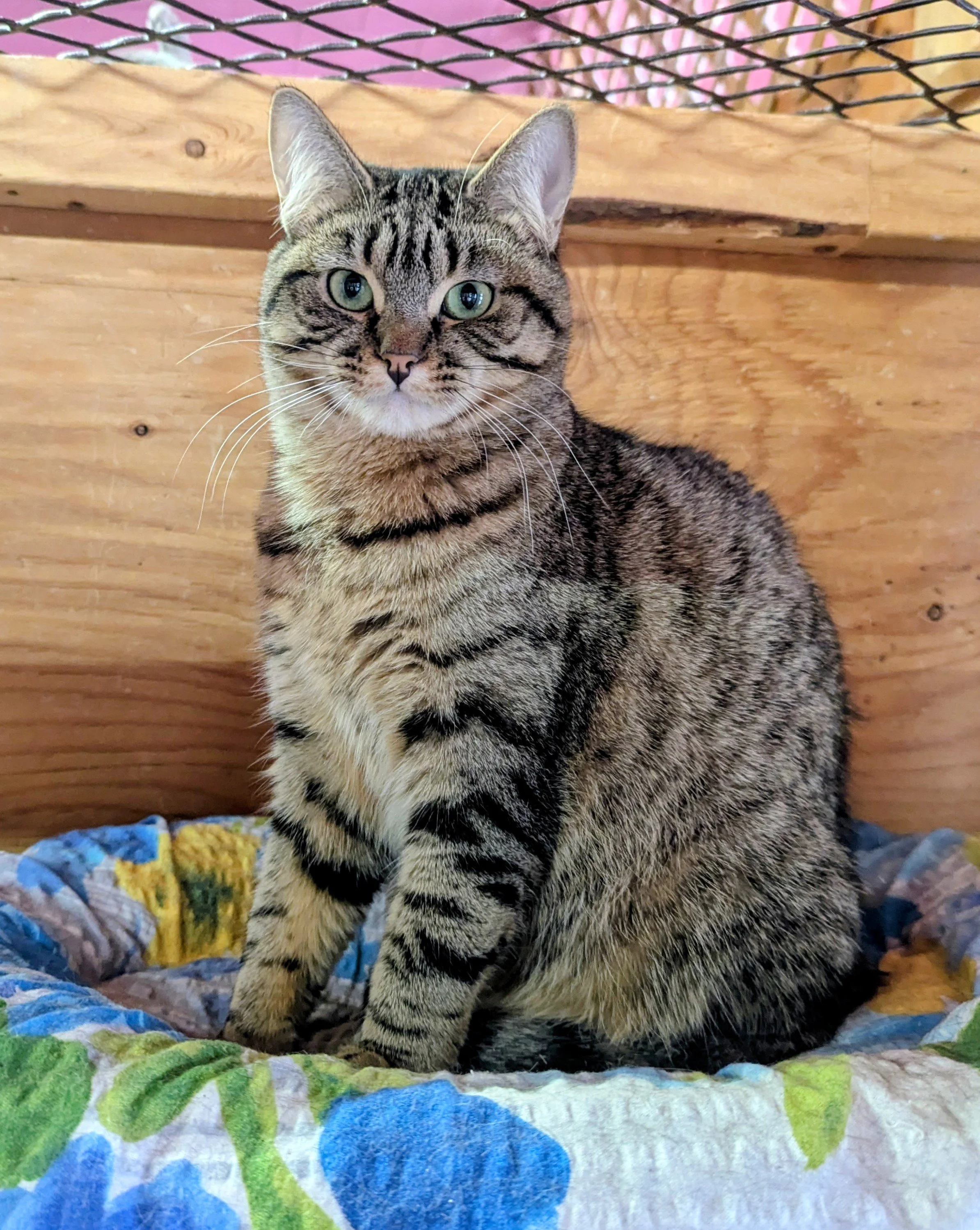 Deena is a beautiful tabby girl who has come a long way since being rescued from the outdoors with her sister, Dalia. She enjoys playing with her sibling and other kitties in her walk-in Kennel and absolutely loves cuddle time. Deena will happily sit on your lap and purr up a storm, soaking up every bit of attention and affection she can get. She is gentle, affectionate, and truly thrive on human companionship. Deena is a sweet, gentle girl ready to share her love in a forever home πΎπ