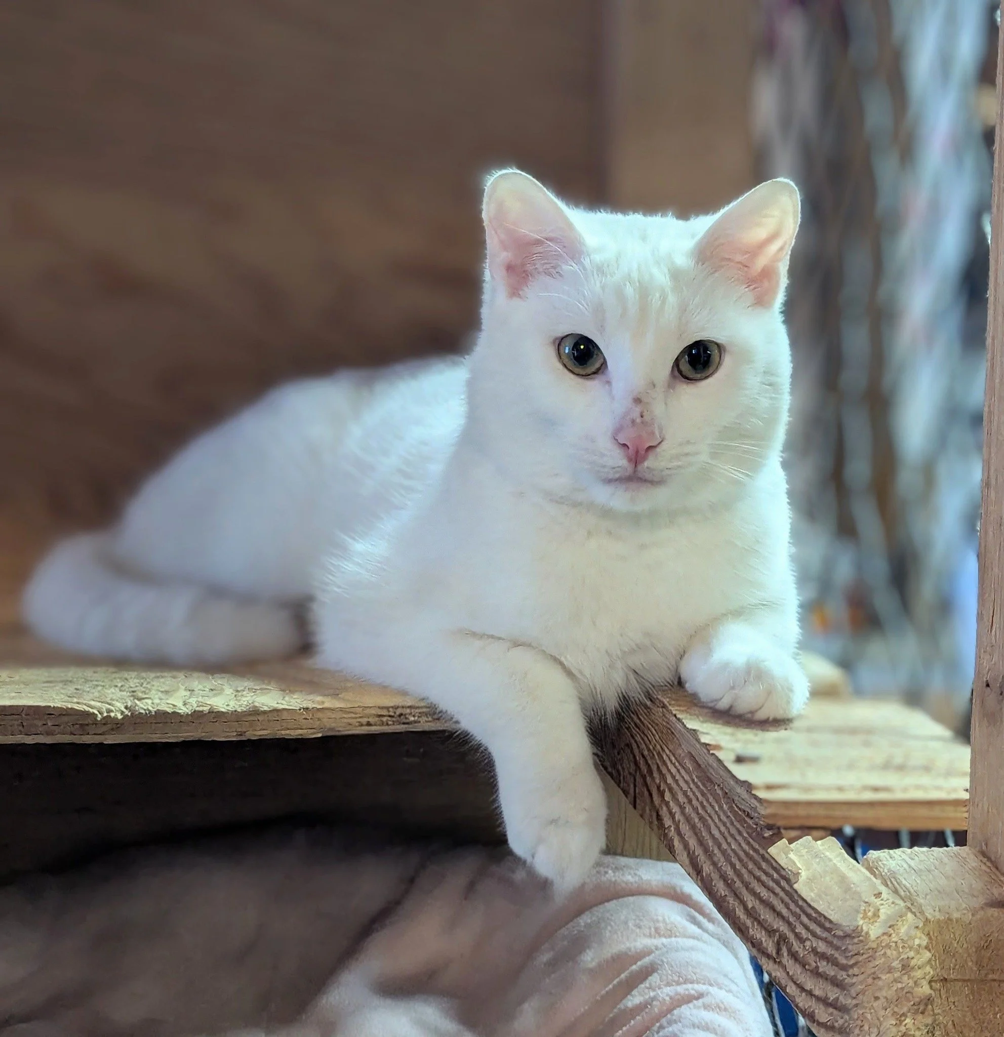 Baylo is a handsome white boy who’s officially ready to leave the shelter behind and find his forever home. This sweet guy is a true lap cat—he loves to curl up close and soak in all the affection he can get. Baylo is incredibly friendly, craves attention, and will happily be your constant companion. He also gets along wonderfully with all the other shelter kitties, making him a great fit for a multi-cat home. If you’re looking for a loving, social, and snuggly cat to brighten your days, Baylo might be the perfect match.