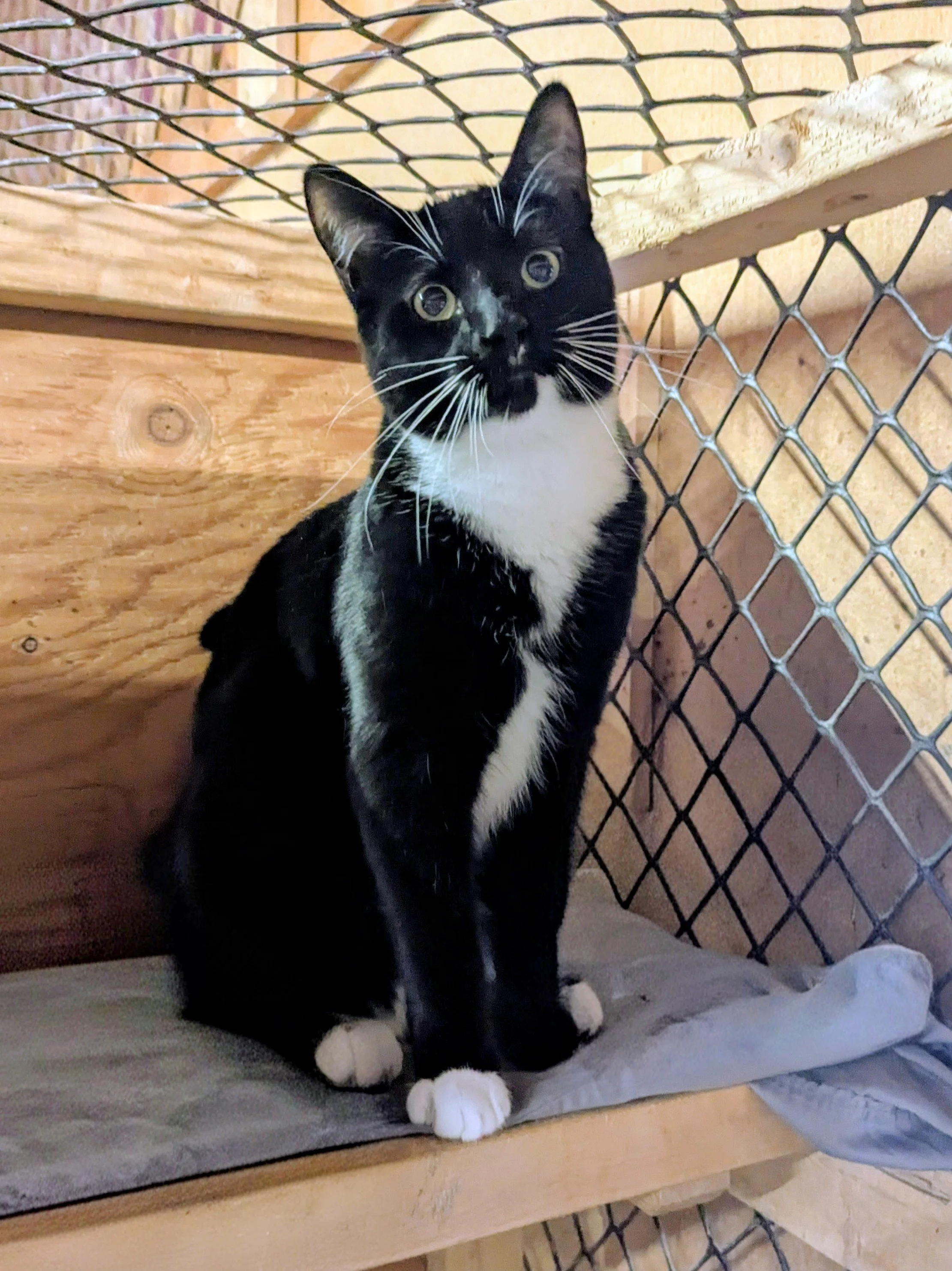 Franio is a charming tuxedo boy with an endless sense of curiosity. Whether he’s investigating a new corner or chasing after a toy, Franio is always on the move and eager to learn something new. His playful spirit is matched by his warm and friendly nature—he gets along beautifully with all the other shelter kitties and thrives in their company. Franio would be happiest in a home where he has a feline friend by his side, especially his brother Fritzl, or another friendly cat who can be his buddy and help guide him as he settles in. With his confidence, playful energy, and entertaining personality, Franio is sure to bring joy, laughter, and a little bit of mischief to any loving home. If you’re looking for a lively and affectionate companion, Franio might just be the perfect match.