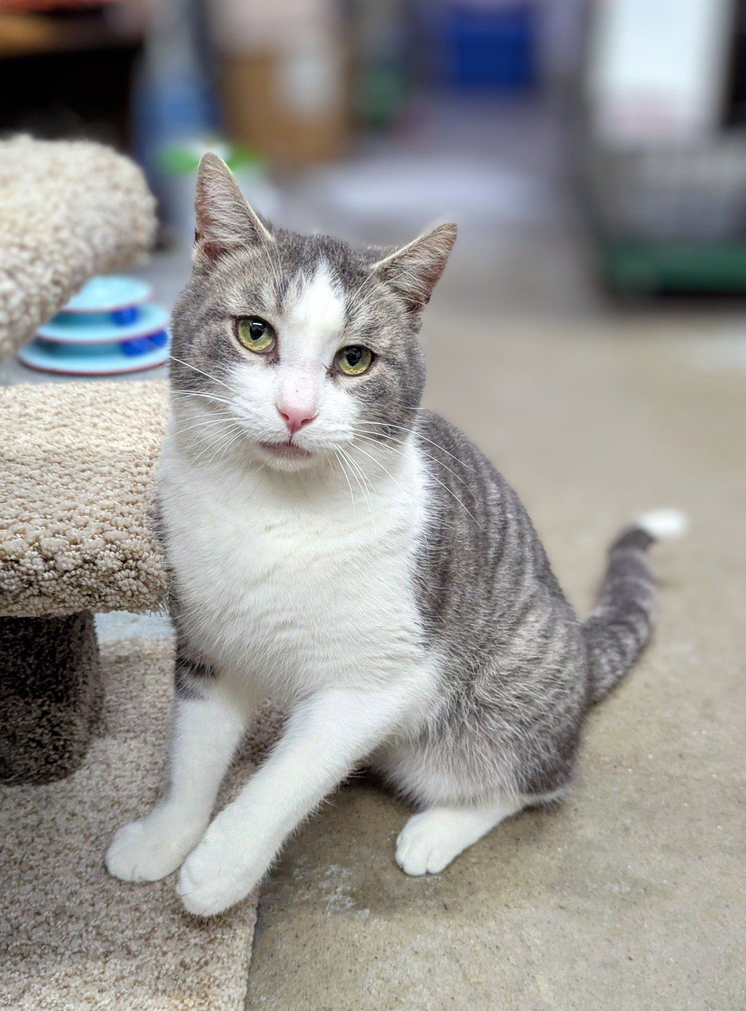 Gator is a sweet, friendly grey and white boy with a personality just as adorable as his looks. He has the cutest little chirp he uses when he wants attention — and trust us, it’s impossible to resist! He loves being around his people and is always happy to soak up pets and affection. Gator would do best as the only pet in the home, where he can be the center of attention, or with a feline friend around his age who can match his playful energy. If you’re looking for a loving companion with a charming little voice, Gator is ready to chirp his way right into your heart.