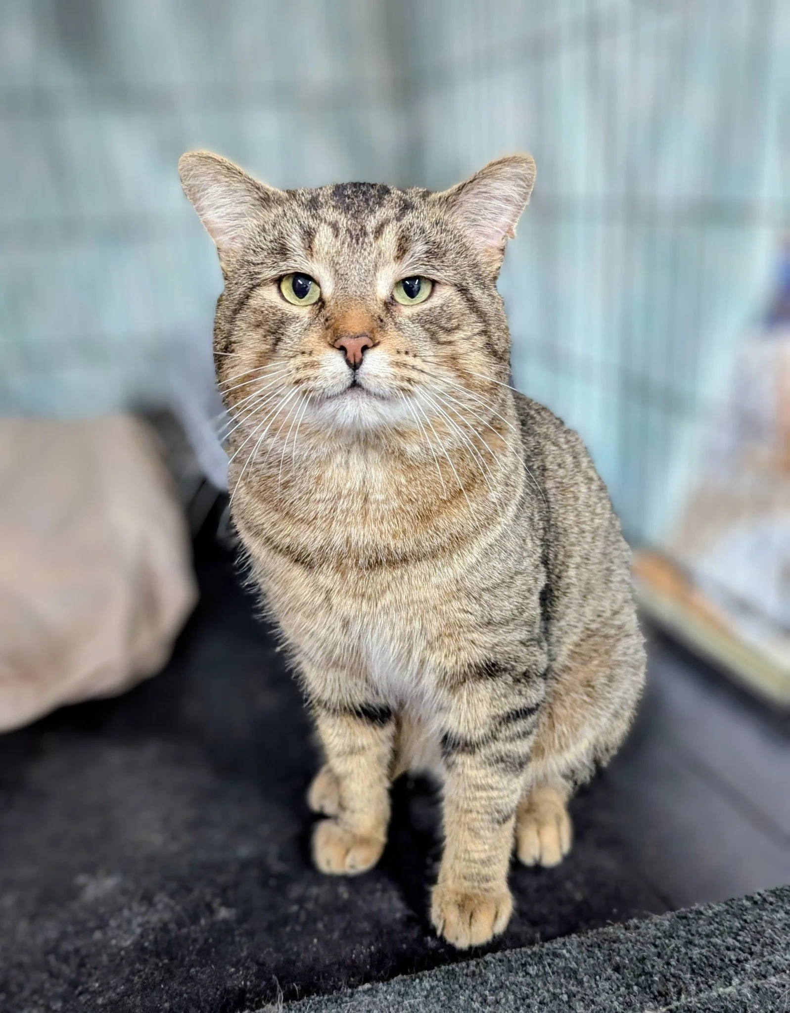 Osmond is a handsome FIV-positive tabby boy who is looking for his forever home. This big teddy bear is approximately 3 years old and has a charming, affectionate personality that will make you fall in love with him instantly. Osmond craves attention, and will purr contently while you pet him. As a FIV-positive cat with proper management and care, he can live a long and healthy life. It's important to note that FIV is not transmittable to humans or other animal species, and is only contagious to other cats through deep bite wounds. Despite his FIV-positive status, Osmond is a happy and healthy cat who has a lot of love to give. He would make a wonderful companion for someone who is looking for a sweet and affectionate cat.