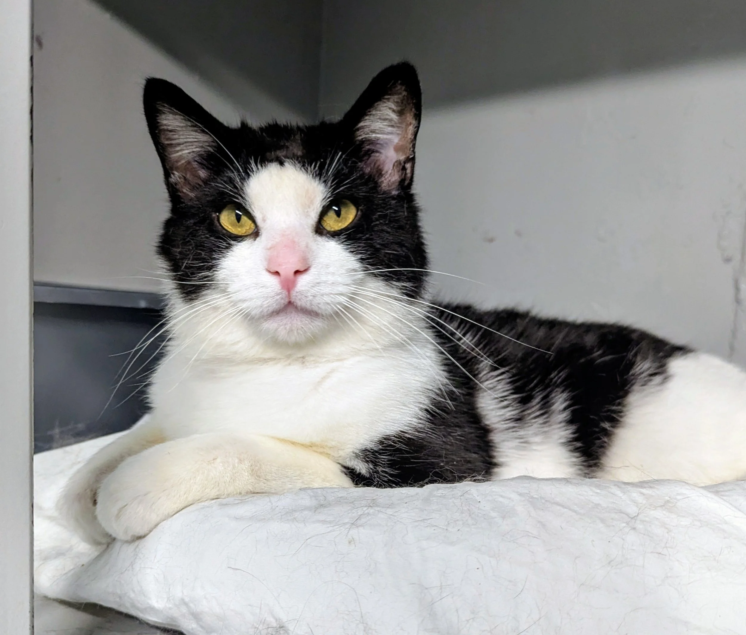 Tongo is a young, friendly tuxedo boy waiting at the shelter for his family to find him. A true purring machine, he starts rumbling the moment you give him attention, as if he’s been waiting all day just for you. His friendly, affectionate nature makes him the perfect companion—equal parts cuddle buddy and loyal shadow. Wherever you are, Tongo wants to be right there with you, sharing warmth, comfort, and plenty of love.