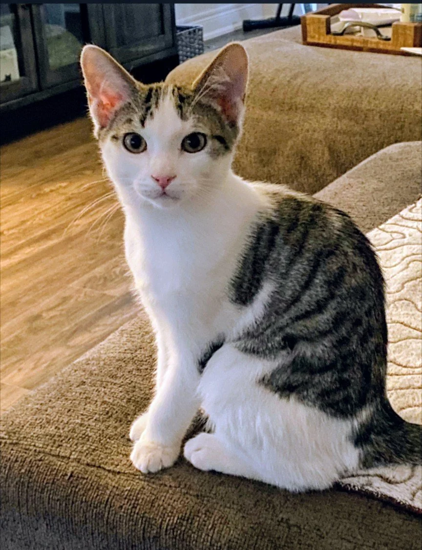 Aydan is a curious, affectionate and playful boy who enjoys entertaining himself and everyone around him. He loves being petted and cuddled, and tells you how much with his infectious purrs and sweet meows. He gets along well with other cats or kittens whether they're playful or calm. Plastic springs are one of his favourite toys but he will entertain himself with any toy that rolls or bounces. Once he's tired he'll retreat to the hammock on his cat tree for a nap. Aydan would be a wonderful companion to any loving home!