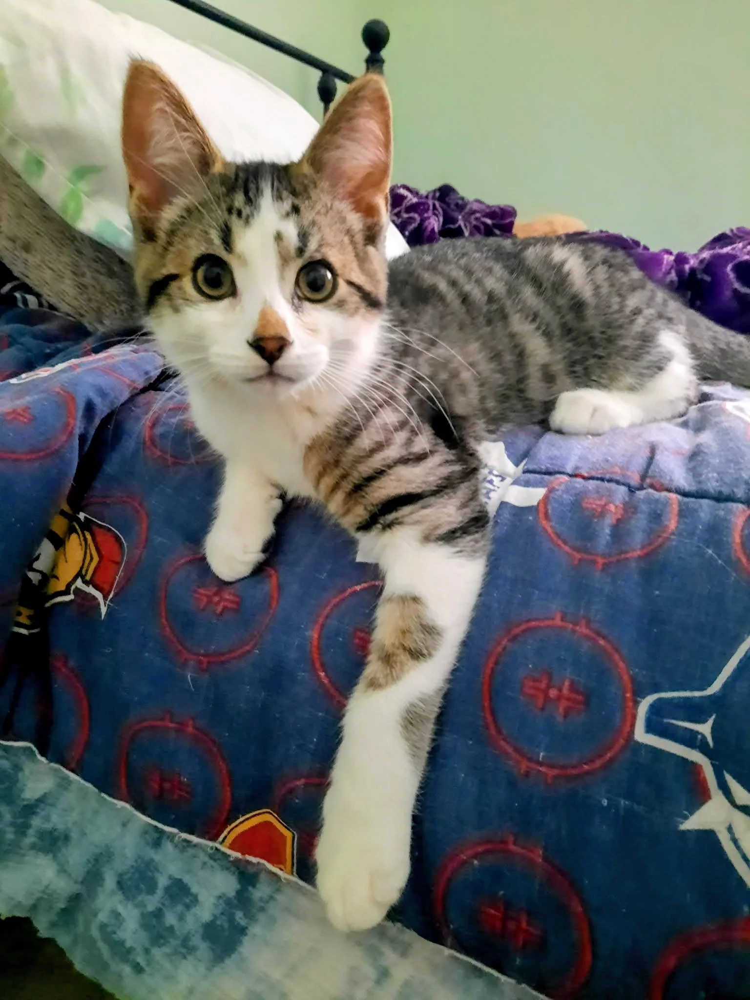 Ditalini is a sweet tabby-and-white kitten with a playful spirit and a big heart. He adores chasing balls and string toys, and when he’s not in action, he’s happiest curled up on your lap, purring contentedly. He also loves to wrestle with his sister, Gemelli. These two are a perfect pair and would love to find a forever home together.