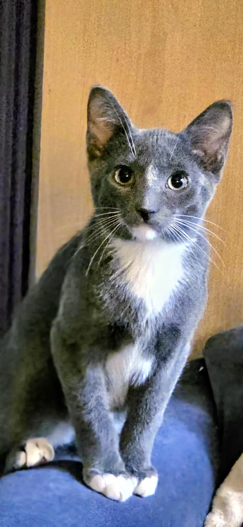 Zani is a sweet grey boy born by C-section on August 3rd, 2025. He may be a little shy at first, but once he feels safe, his playful side comes out. He loves to play, cuddle with his siblings, and dive into cozy blankets for snuggle time. Zani will need a bit of time and patience to adjust to a new home, but he’s absolutely worth the wait. He enjoys rough-and-tumble play with his brother and will blossom with a gentle, understanding family. If you can offer a calm, loving space, Zani would be thrilled to make it his forever home.